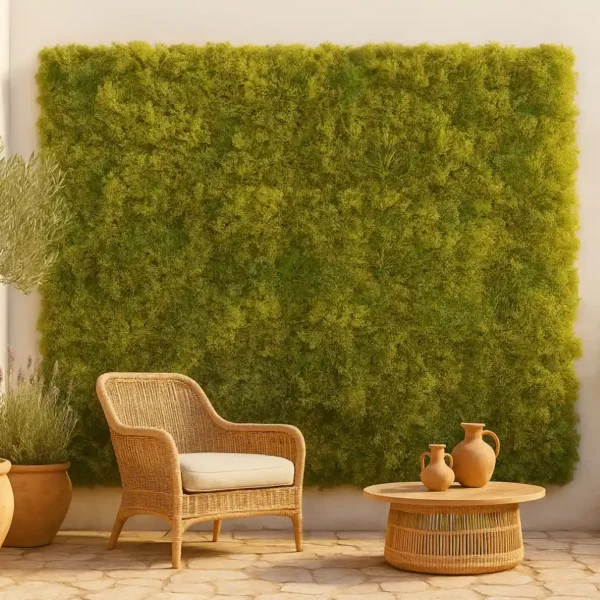 Con medidas de 50×50 cm, estos paneles permiten una instalación flexible, ya sea cubriendo pequeñas áreas o combinándolos para crear superficies más amplias. Son ideales para hogares, oficinas, terrazas y negocios que buscan un toque verde sin mantenimiento.