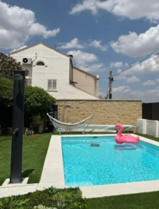 - Tipo de espacio: Jardín privado con piscina y terraza.