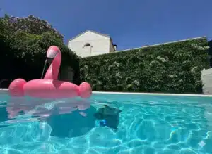 - Un espacio perfecto para relajarse, hacer fotos y disfrutar de reuniones junto a la piscina.